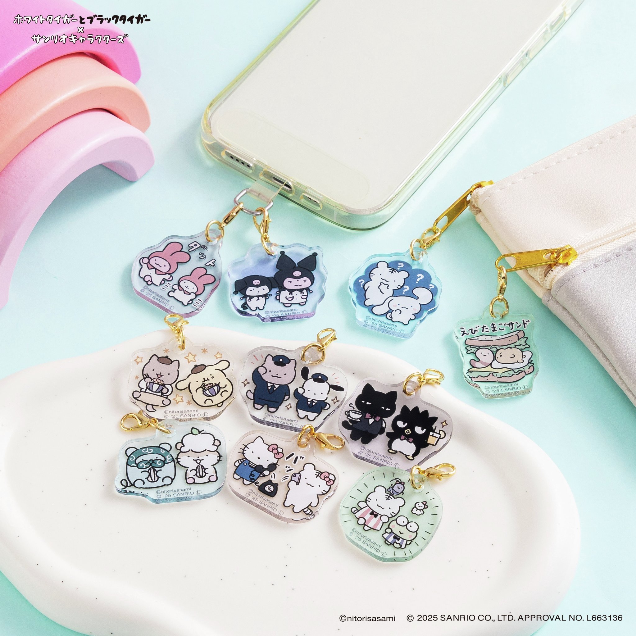 日本 小白虎與黑虎蝦ホワイトタイガーとブラックタイガー x Sanrio 小吊飾盲抽