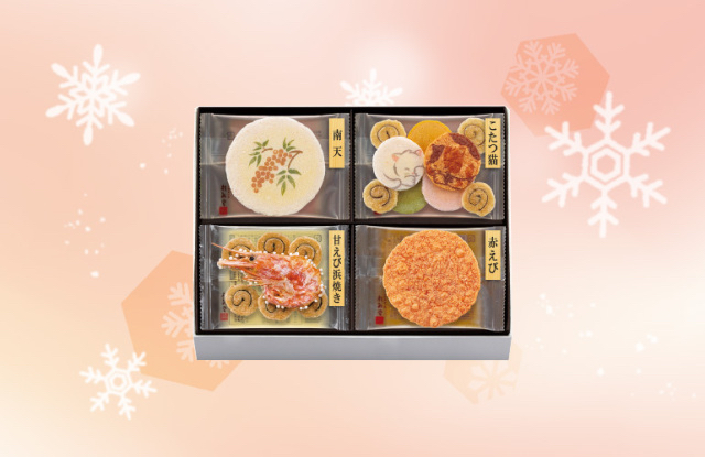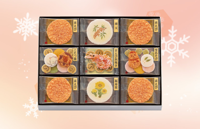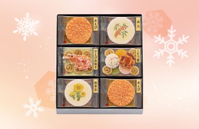 日本桂新堂 季節限定《冬の光》4款工藝雜錦繪圖 及原隻鮮蝦 蝦餅禮盒 10件