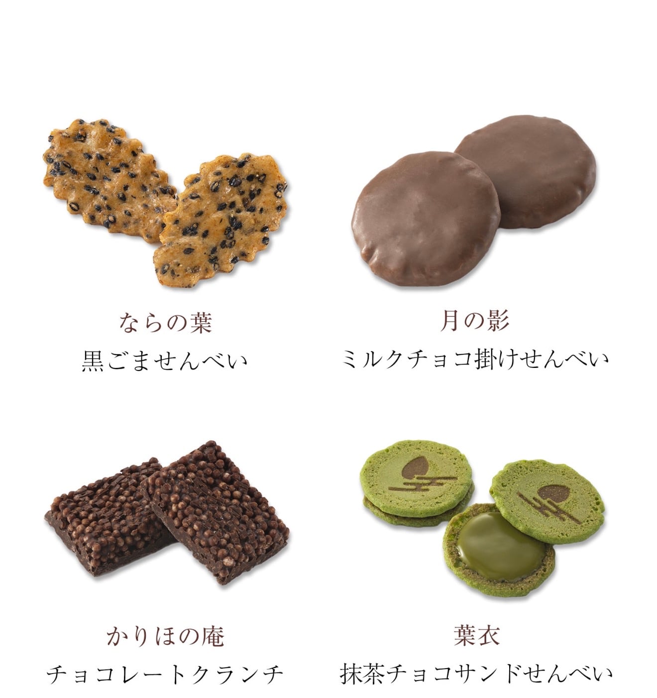 4片一口大小的米菓和3塊巧克力的美味組合,一包裡頭有七種風味,享受到各種不同的層次風味,甜鹹完美的平衡 。 每款都有著不同外型,享受代表京都風味般的外觀和豐富的味道,例如月亮形的杏仁米菓,裹上抹茶巧克力的米果和濃郁的硬幣型巧克力、京都的楓葉、粉色的櫻花。 4袋 $109 6袋 $139 10袋 $188 16袋 $245