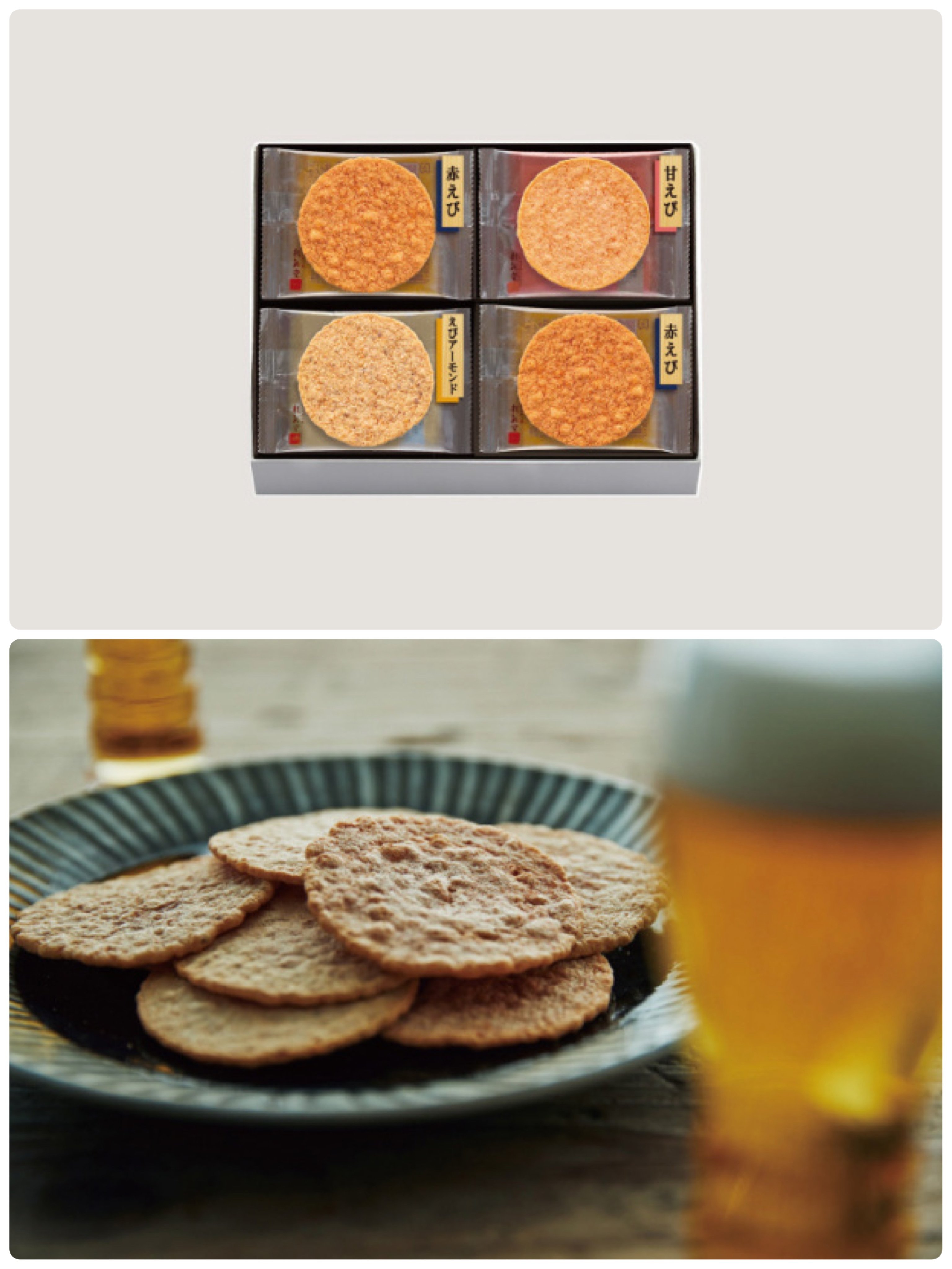 蝦餅是將蝦肉與麵粉、糖和鹽混合製成的 您可以享受打開袋子的那一刻散發出來的香氣和充滿嘴巴的蝦的濃郁味道 內容量:12枚(烤甜蝦x 3/ 蝦杏仁 x 3/ 烤紅蝦x 6)