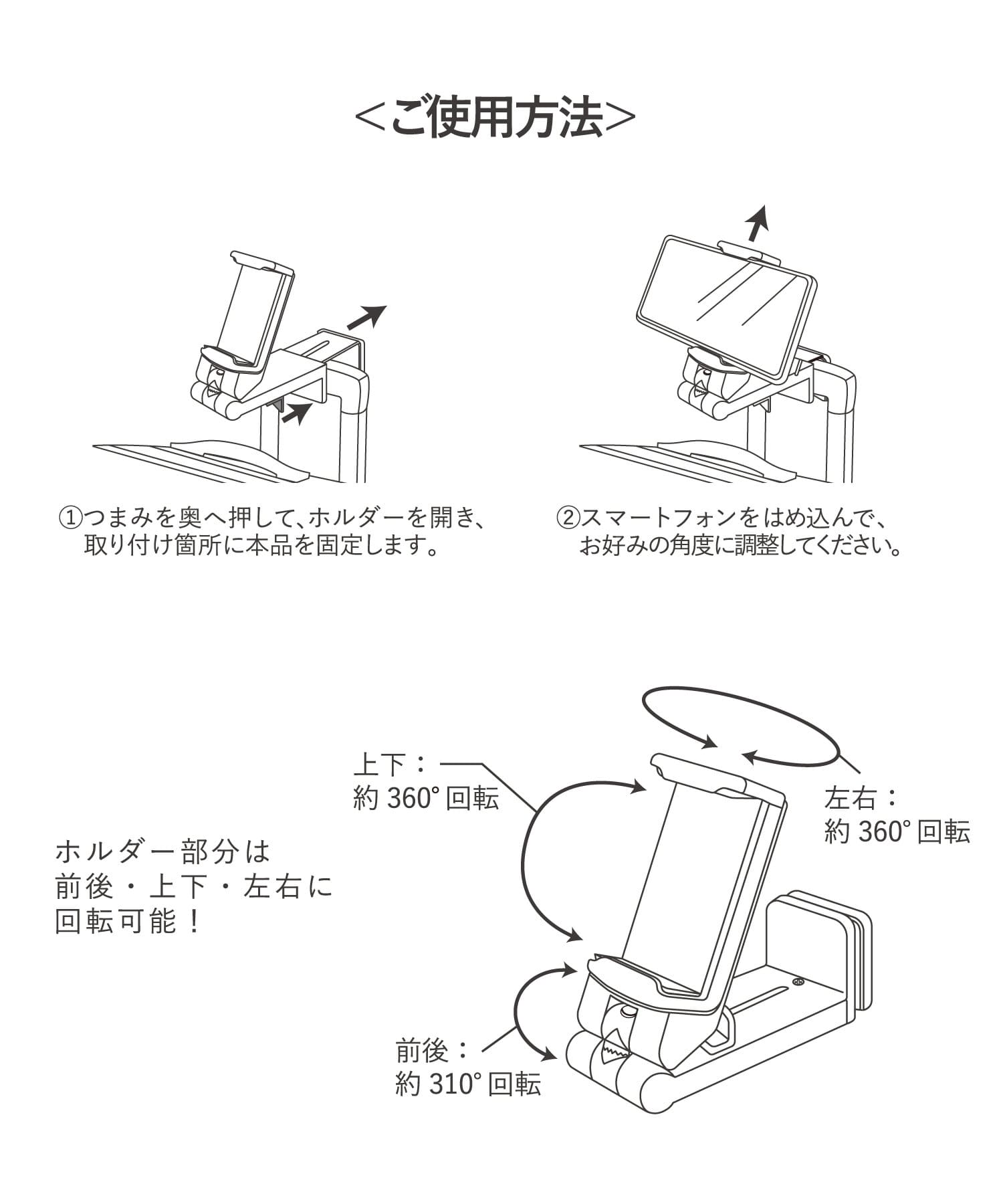 即使在沒有手機支架的地方,也能舒適地觀看您的智慧型手機 可安裝在各種位置,例如飛機桌和行李箱 支架可調整至舒適的觀賞角度,讓您輕鬆使用