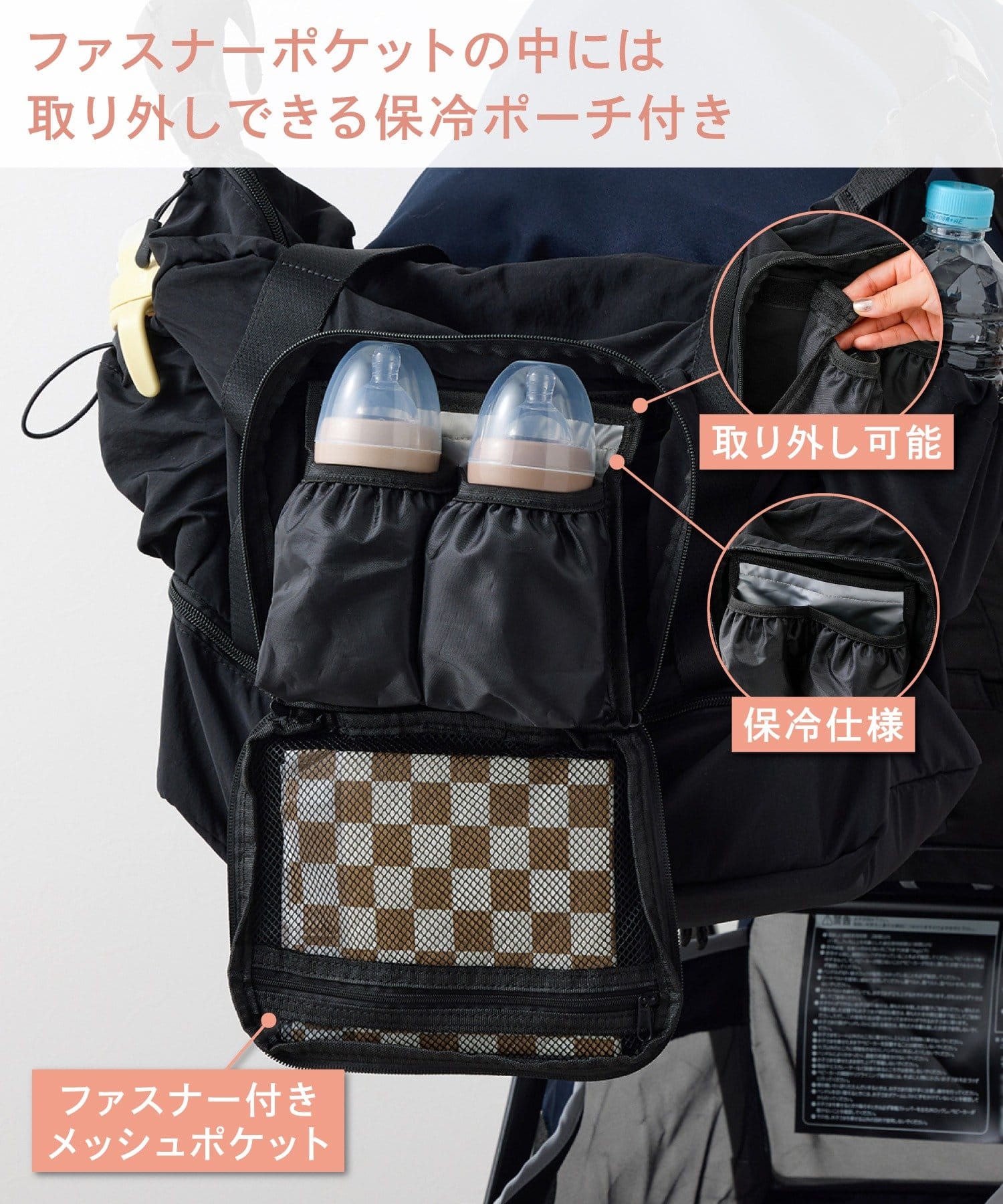 三用設計使其可掛在嬰兒車上、作為隨身行李包或單肩包使用。 它配有方便的側袋,可放置飲料。 正面拉鍊口袋內含一個可拆卸的保溫袋,非常適合存放奶瓶、果凍、果汁和其他物品。 六個內袋可整齊收納小物。 防水外層布料即使在下雨天也能讓您安心無憂。