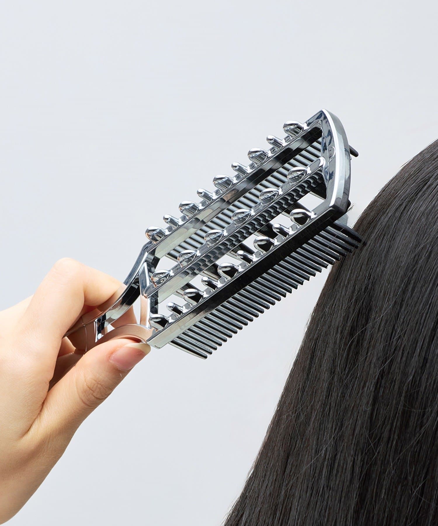 帶有梳子,可用於頭皮護理的金屬梳子 梳子部分是2排,所以長髮也很容易梳理 抑制摩擦,使頭髮順滑 抑制靜電,抑制頭髮的擴散