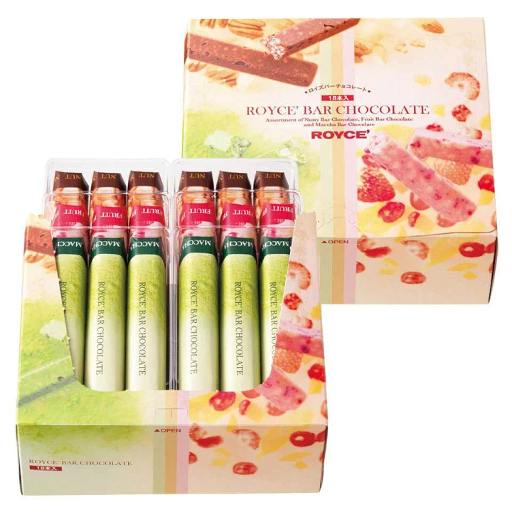 堅果朱古力棒 每條內含4 種碎堅果 杏仁、腰果、山核桃和澳洲堅果,並配以杏仁泡芙和鬆脆餅乾。 巧克力方面仲添加了榛子和杏仁糊,使其更濃郁 莓果朱古力棒 充滿水果風味,酸甜可口,清爽。帶有乾果芒果和蔓越莓、凍乾草莓和杏仁,白巧克力與草莓和香蕉粉混合鬆脆可口,充滿水果味 抹茶朱古力棒 堅果的質地與華麗的抹茶味道產生共鳴 ,一套 6 條朱古力棒 內含 4 種碎堅果(杏仁、腰果、山核桃、澳洲堅果)、杏仁泡芙和帶有濃郁抹茶香氣的朱古力曲奇