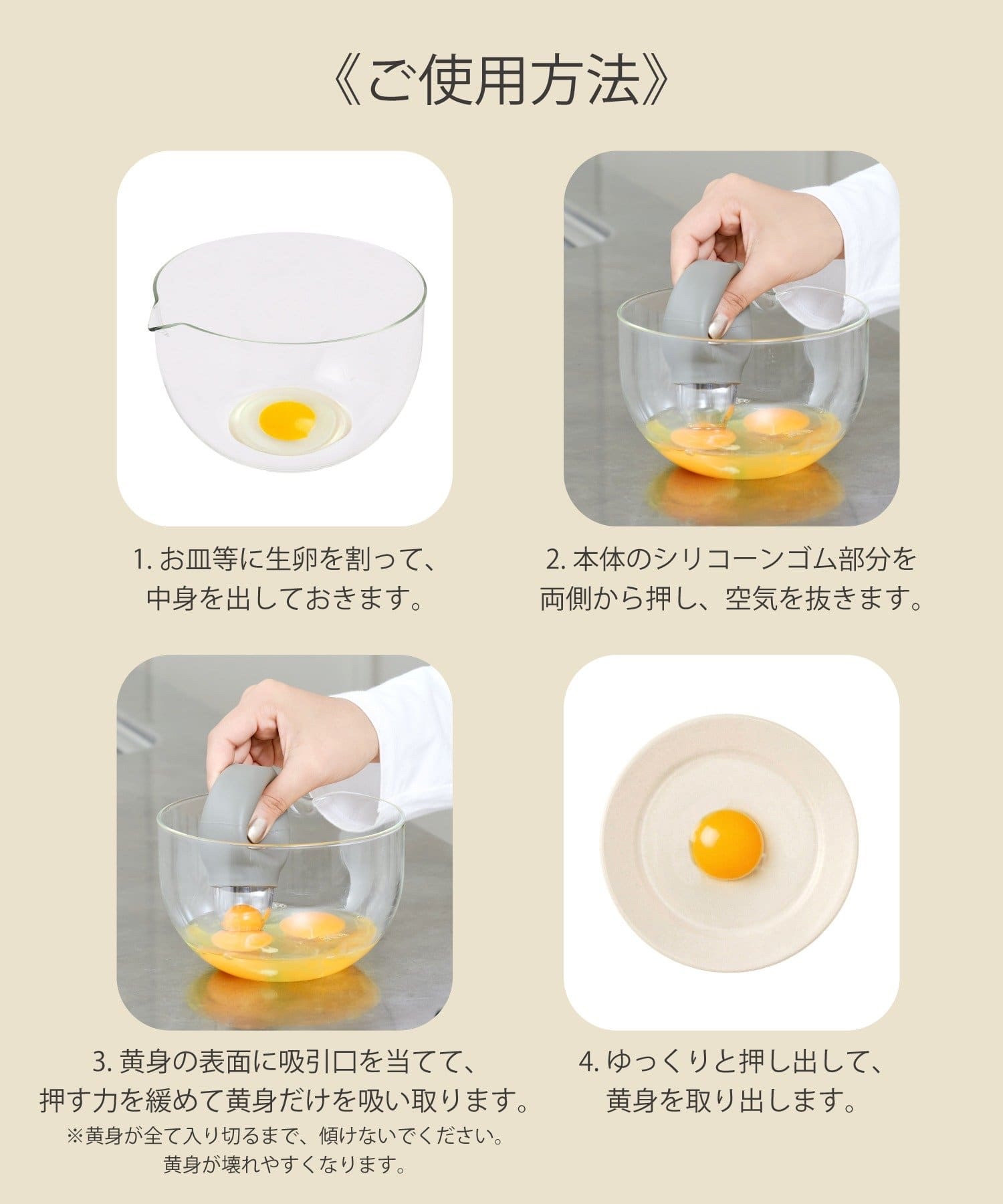 生雞蛋的蛋白和蛋黃可以簡單分開 只輕輕吸出蛋黃的滴管式,可以不弄髒手