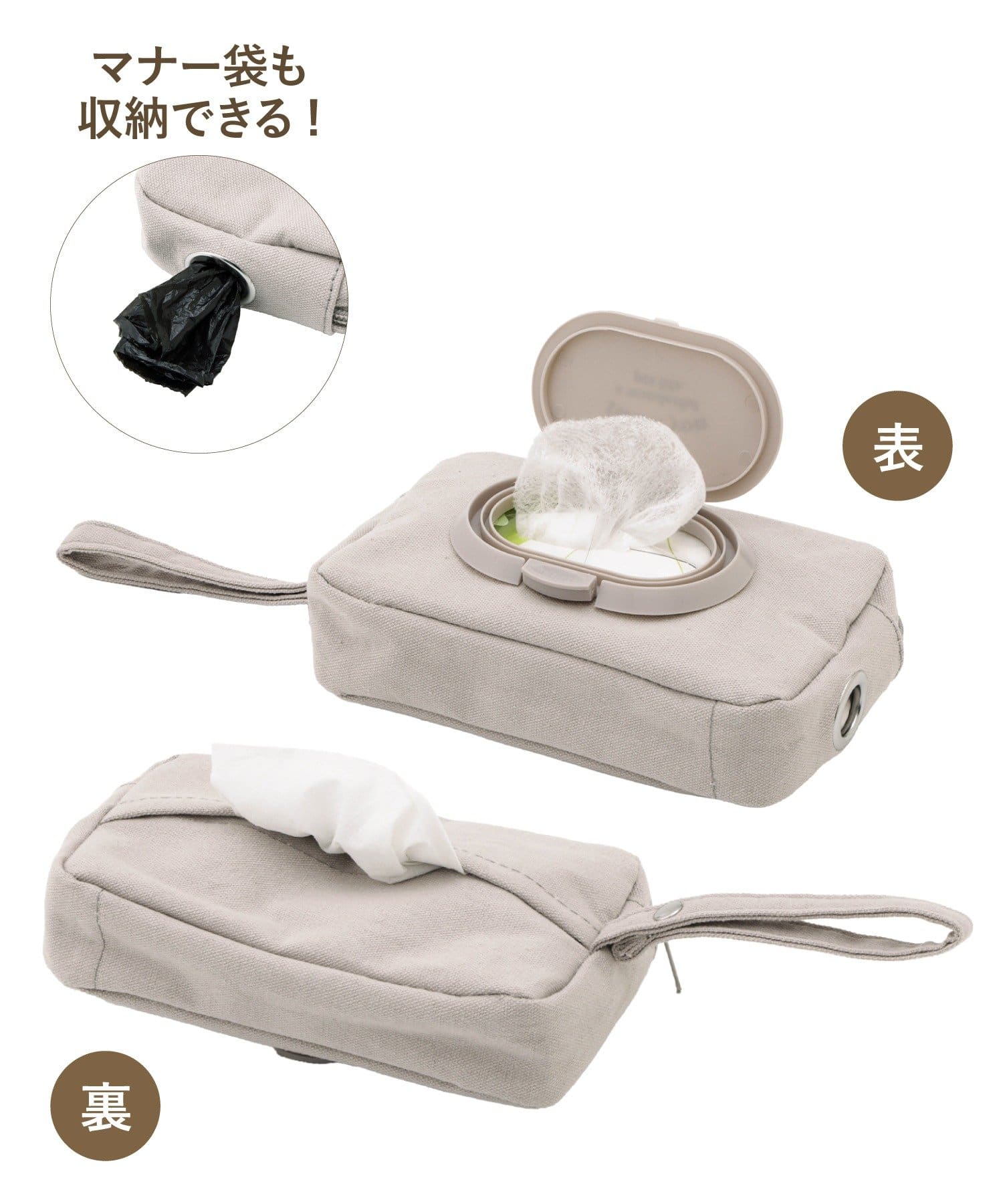 可以收納馬桶袋和濕紙巾 可以掛在包包上,方便散步時攜帶 背面還有紙巾袋