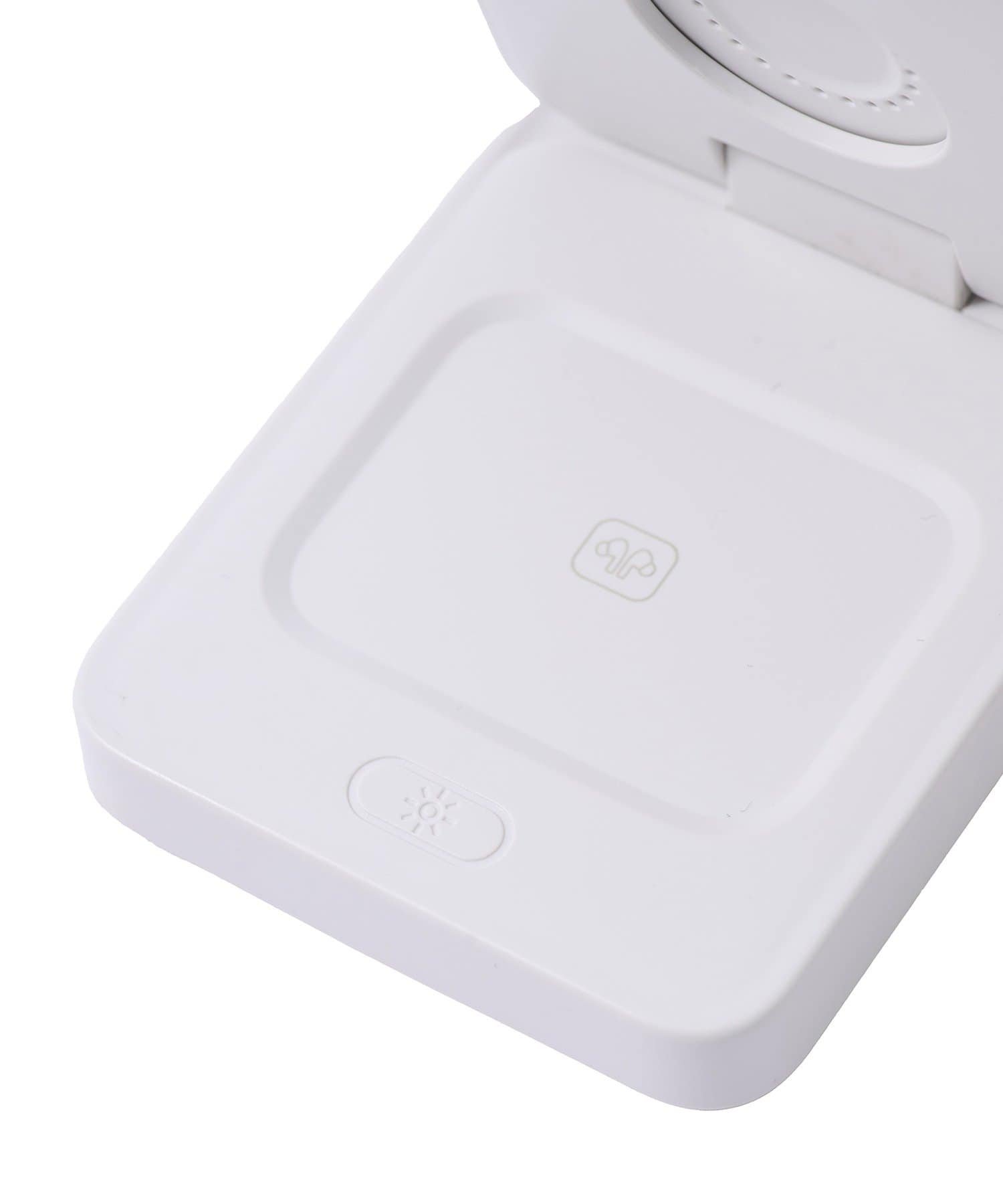 可以同時為3臺對應機器充電 安裝在支架上就可以簡單充電的無線型 附帶可以選擇3級亮度的燈 不用的時候可以摺疊起來收納