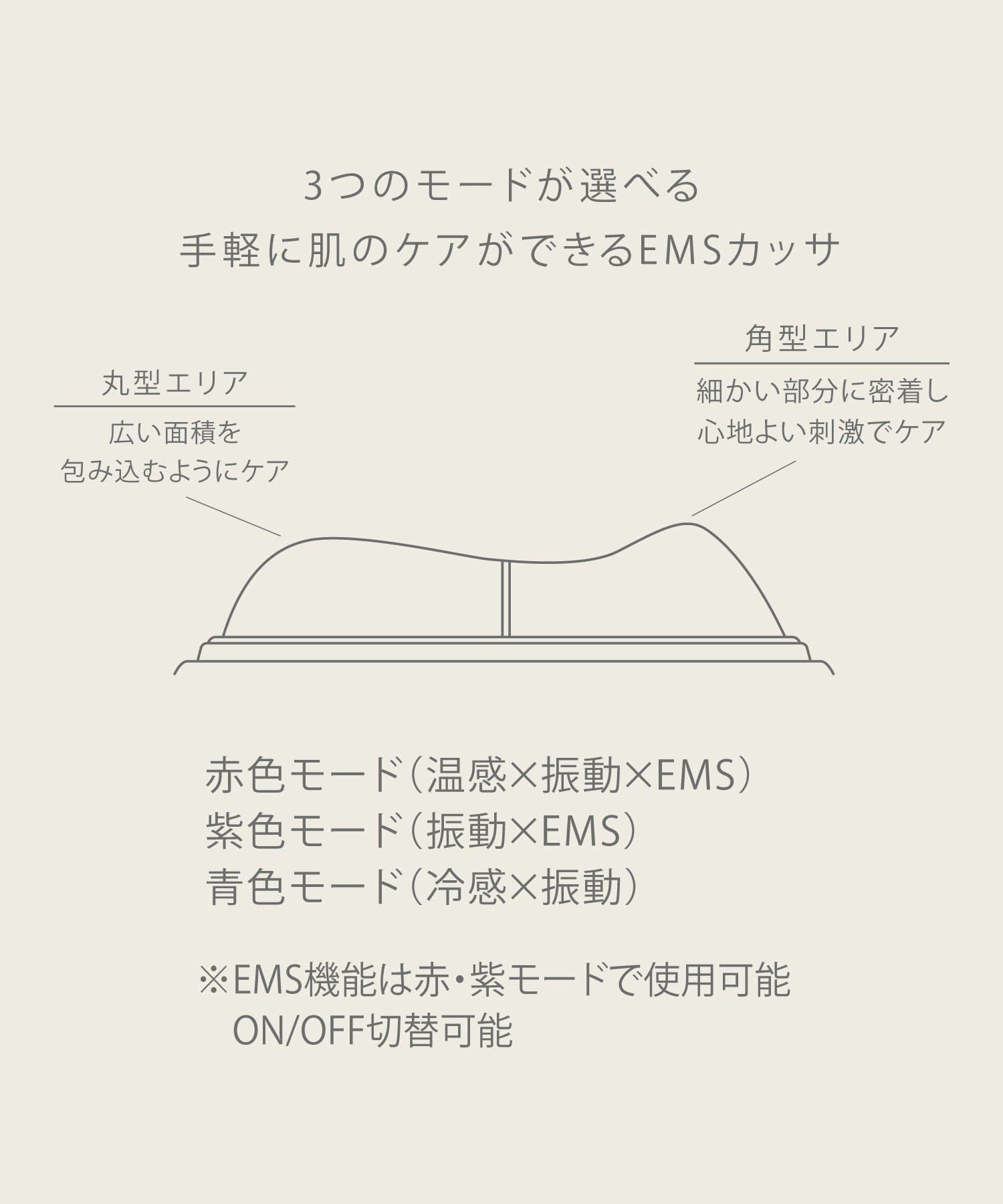 三種模式可供選擇: 紅色模式(溫暖、振動和 EMS) 紫色模式(振動和 EMS) 藍色模式(涼爽和振動)